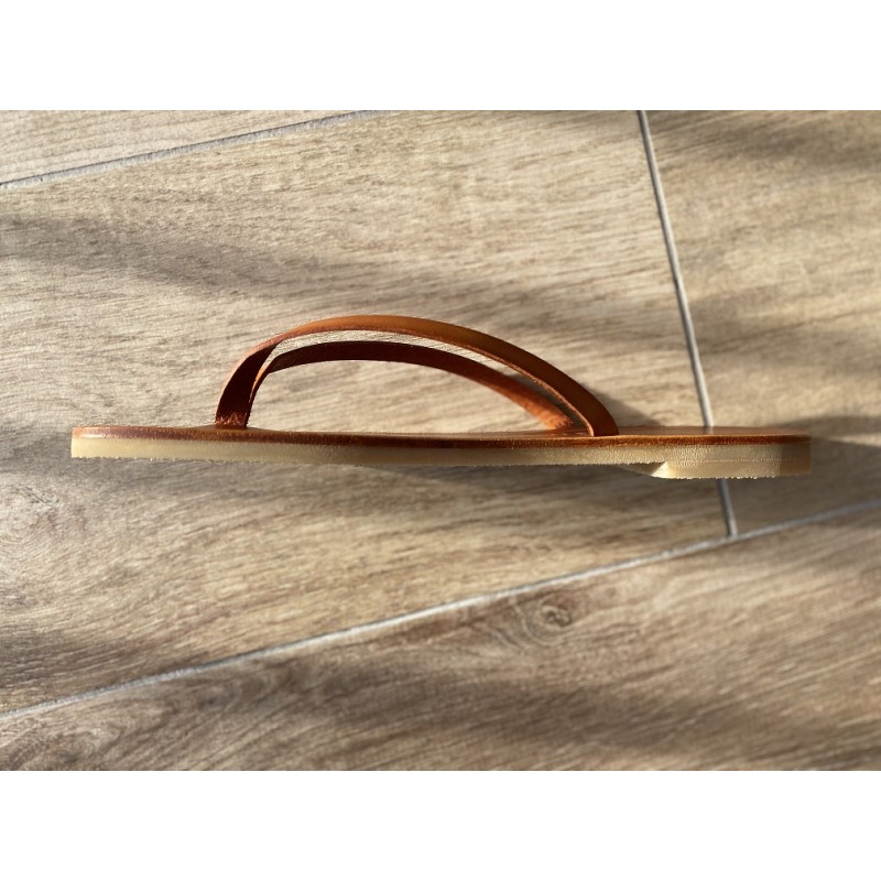 - la semelle Cuir de 6mm, coupée dans du cuir Croupon, choix des puristes de la Tong Cuir