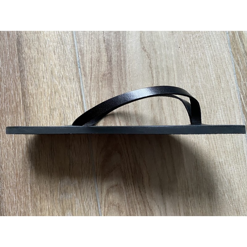 - la semelle Eva Noire de 7mm de série sur la Tong Cuir La Valérie, en caoutchouc synthétique, la plus légère!