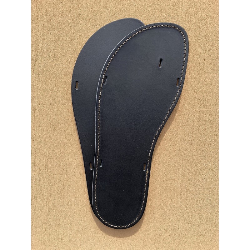 - la semelle Cuir de 6mm, coupée dans du cuir Croupon, choix des puristes de la Tong Cuir