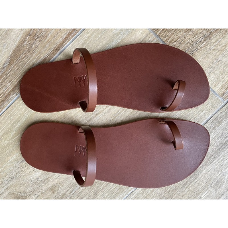 La Tong Cuir Marron La Billie de la Collection Nue par MMLL® est fabriquée artisanalement dans notre atelier en France.