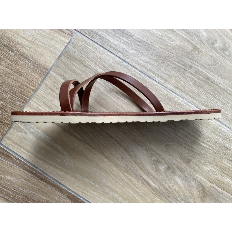 Le Cuir Marron au reflets rouges de la première en Cuir Collet de 3,2 à 3,5mm de la Tong Cuir Marron L’Axelle est d'une grande élégance.
