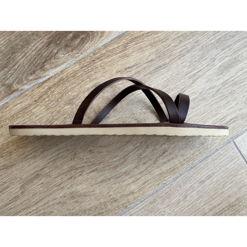 - Semelle plane sans talonnette de série sur la Tong Cuir L’Axelle