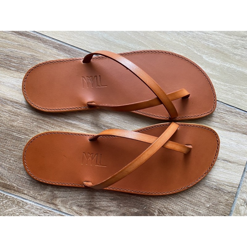 La Tong Cuir Orange La Lou de la Collection CHOUCHOU par MMLL® est fabriquée artisanalement dans notre atelier en France.