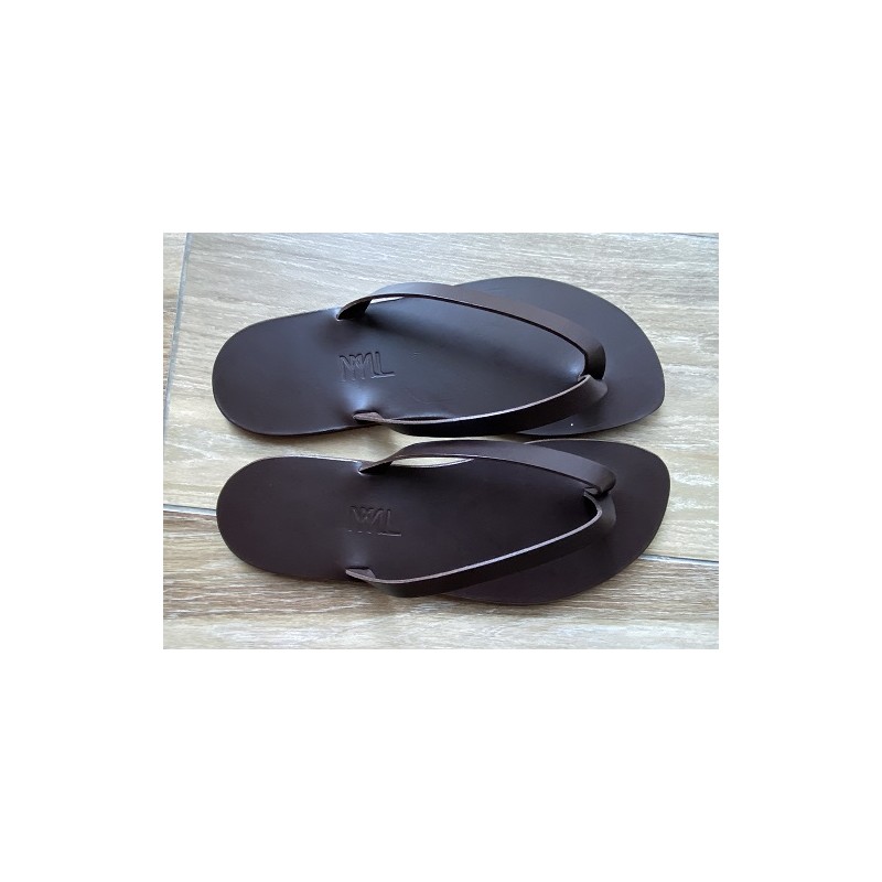 La Tong Cuir Chocolat La Charlie pour homme de la Collection LUI OU ELLE par MMLL® est fabriquée artisanalement dans notre atelier en France.