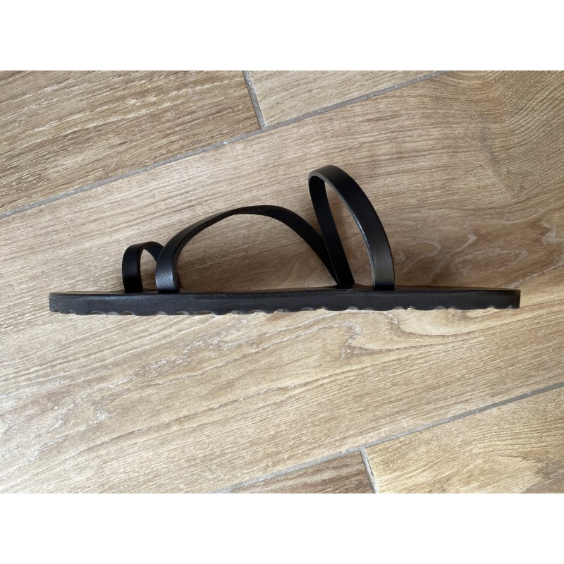 - la semelle Eva Noire de 7mm de série sur la Tong Cuir L’Arielle, en caoutchouc synthétique, la plus légère!