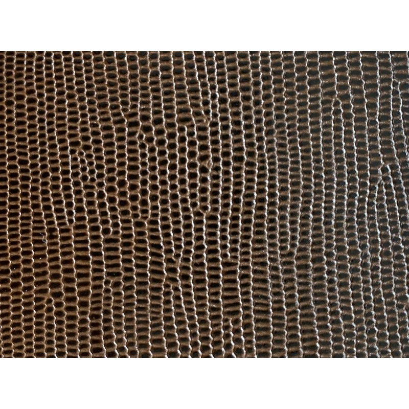 Le Cuir Caviar Marron de la Tong Cuir La 17 est un cuir fin structuré aux nuances de Marron et de Noir, collé sur une première de Cuir Naturel en Cuir Collet de 3,2 à 3,5mm.