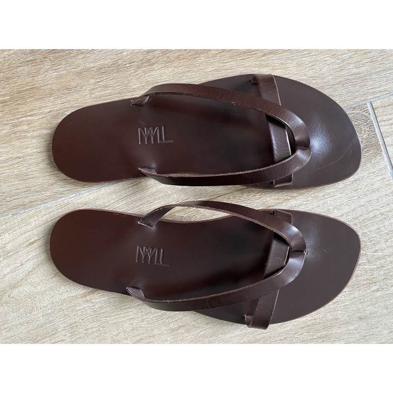 La Tong Cuir Chocolat La Calie de la Collection LUI OU ELLE par MMLL® est fabriquée artisanalement dans notre atelier en France.